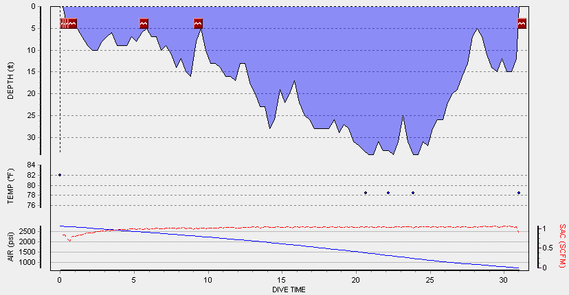 We came out about 32 minutes later and surface swam in the few yards back to shore. My